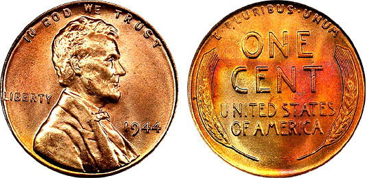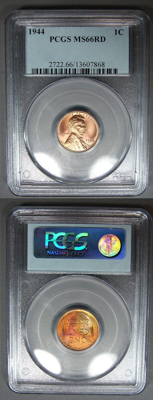 1944 1c PCGS MS66RD Peach and Red Toned