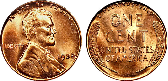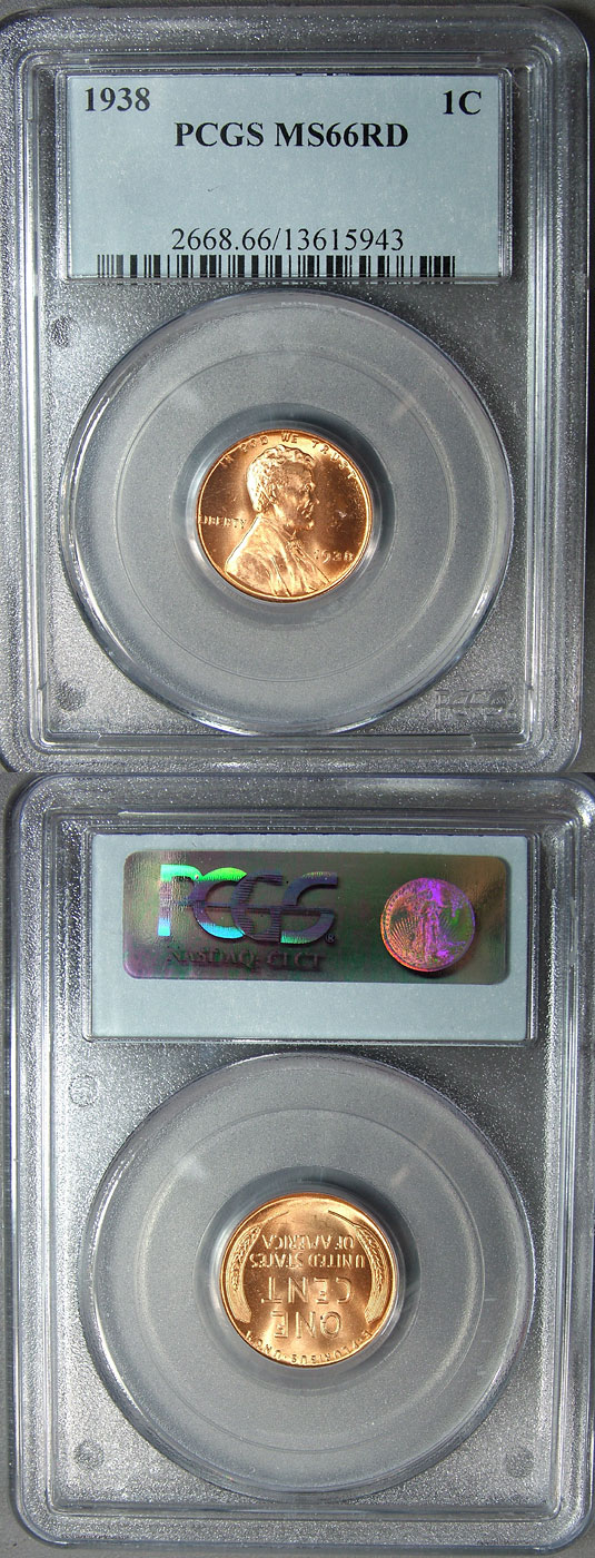1938 1c PCGS MS66RD Lincoln Wheat Cent