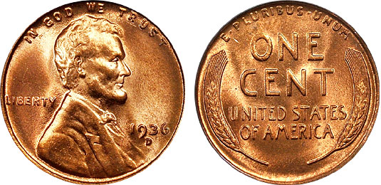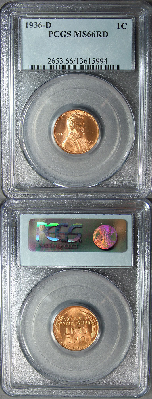 1936-D 1c PCGS MS66RD Lincoln Wheat Cent