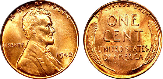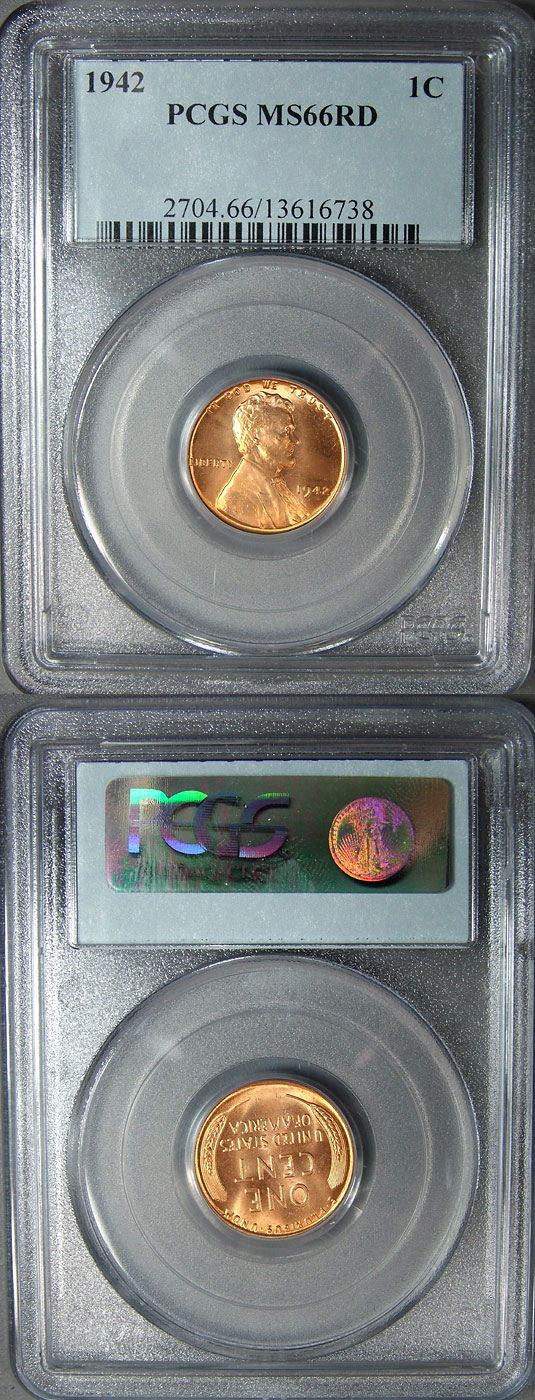 1942 1c PCGS MS66RD Lincoln Wheat Cent