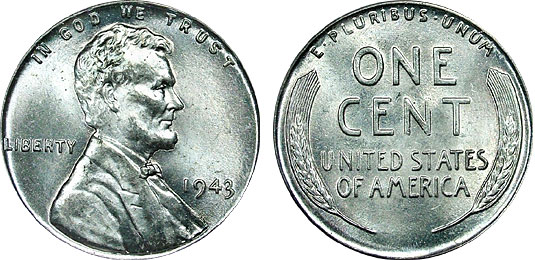 1943 1c PCGS MS64 Steel Lincoln Wheat Cent