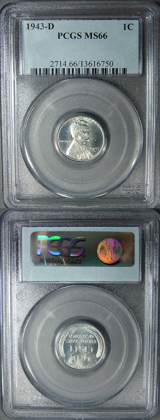 1943-D 1c PCGS MS66 Premium Gem Steel Lincoln Cent