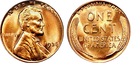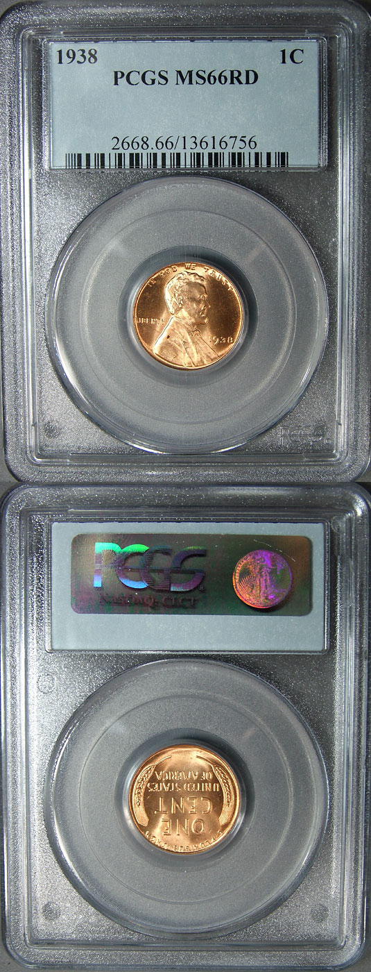 1938 1c PCGS MS66RD Lincoln Wheat Cent