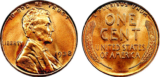 Amazing 1938 copper red cent. You will feel like your world will stop turning when you own this coin. I wonder if this was one of the coins being minted on October 30, 1938. That was the day Orsen Welles gave his radio broadcast about a Martain invasion. Many readers believed it was real, although it was introduced as fiction, and mass panic ensued. http://en.wikipedia.org/wiki/Orson_Welles