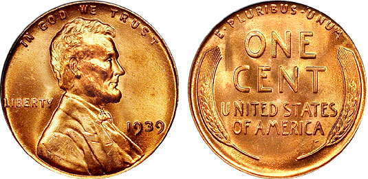 1939 1c PCGS MS66RD Lincoln Wheat Cent