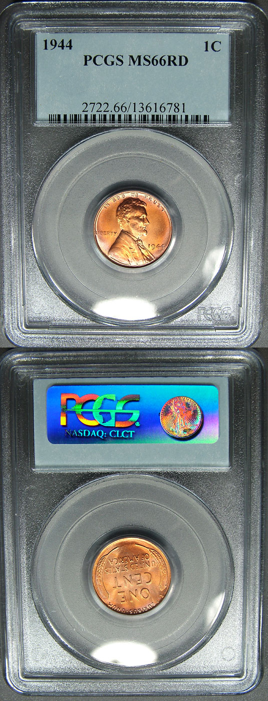 1944 1c PCGS MS66RD - Pink and Peach Toning