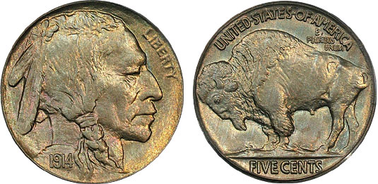 1914 5c PCGS MS65 Lustrous and Toned Buffalo Nickel
