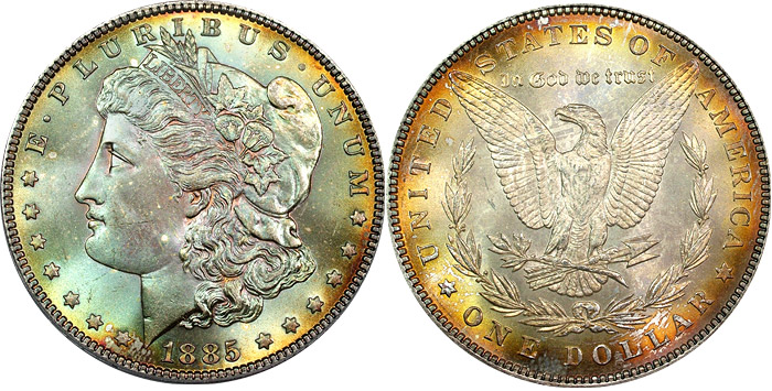 rainbow Morgan dollars.