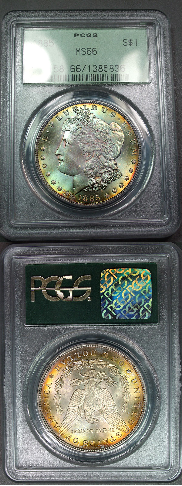 1885 $1 PCGS MS66 Elegant Sage Green Toned Morgan - Tranquilizer