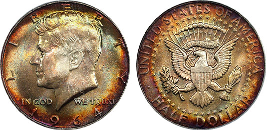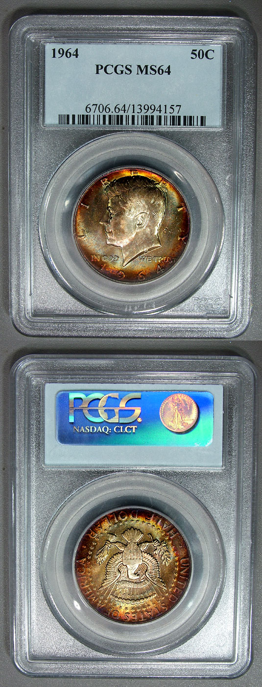 1964 50c PCGS MS64 Mint Set Toned Rainbow Kennedy Half