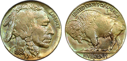 1938-D 5c PCGS Genuine Pastel Toned Buffalo Nickel