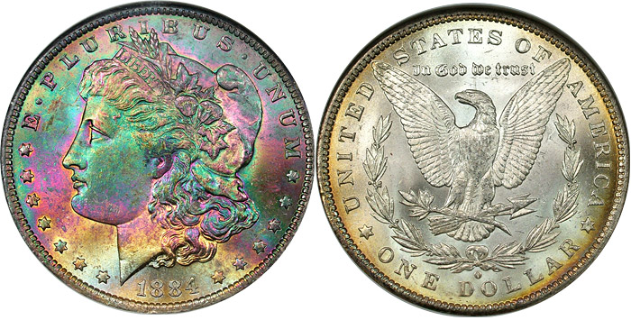 View the largest gallery of high-end and Monster rainbow toned Morgan dollars, an informational guide on how to tell natural vs. artificial toning, learn to price toned Morgans, view auction results of rainbow Morgans, and view what characteristics to look for in high-end toned rainbow Morgan dollars.
