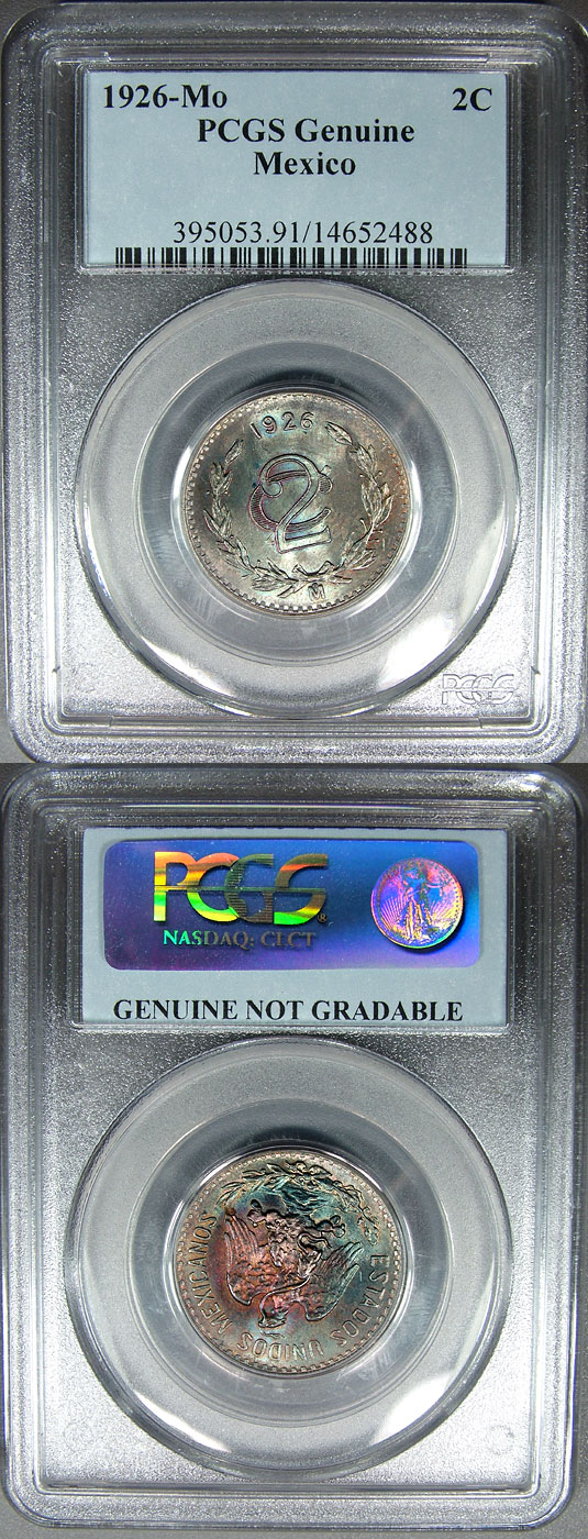 1926 Mo 2c PCGS Genuine Toned Two Centavos