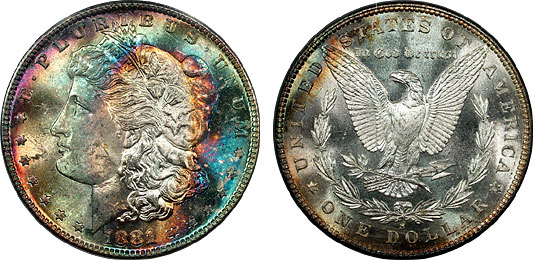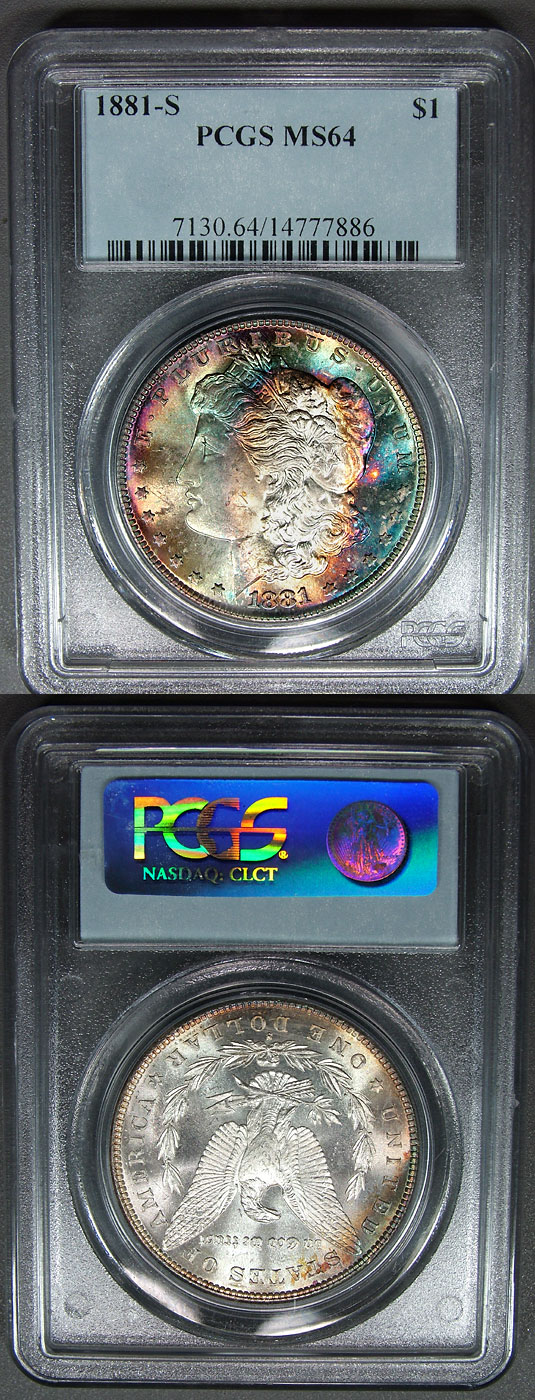 1881-S $1 PCGS MS64 Candy Rainbow Target Toned Morgan