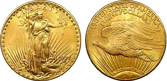 1927 $20 PCGS MS63 Choice St. Gaudens Gold Double Eagle