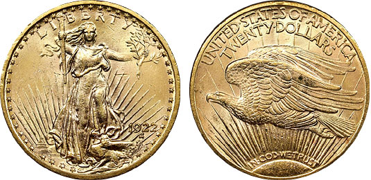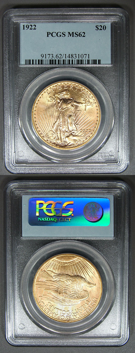 1922 $20 PCGS MS62 Bright St. Gaudens Gold Double Eagle