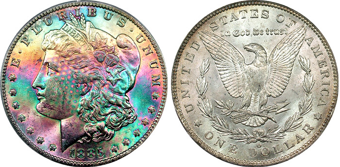 1885-O $1 PCGS MS64 CAC Monster Toned Morgan - Tex Mex