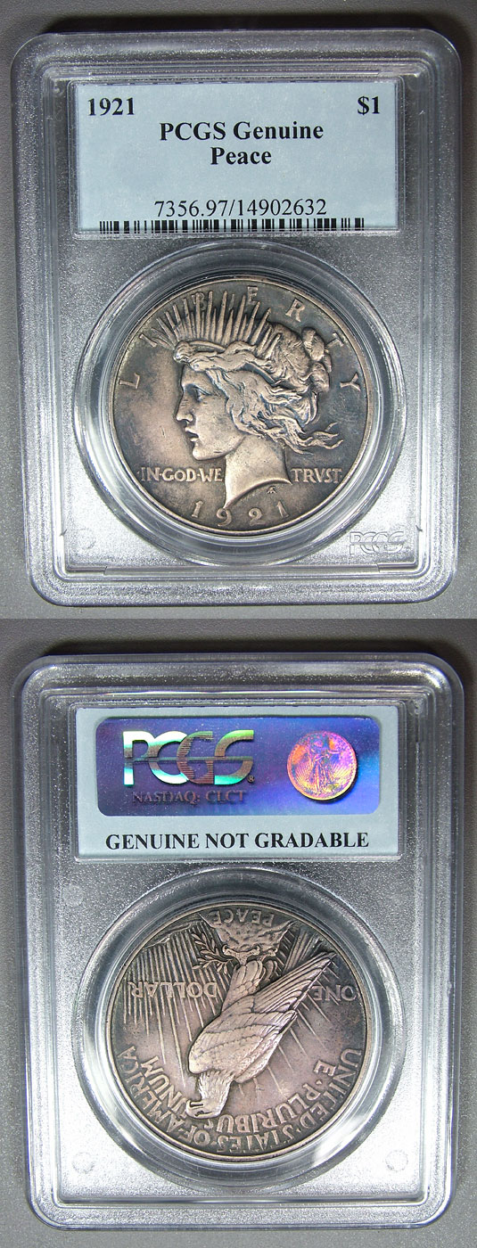 1921 $1 PCGS Genuine (XF) Well Struck Peace Dollar