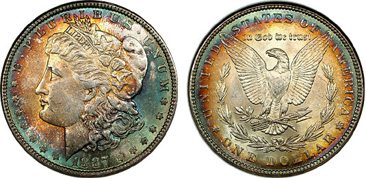 View the largest gallery of high-end and Monster rainbow toned Morgan dollars, an informational guide on how to tell natural vs. artificial toning, learn to price toned Morgans, view auction results of rainbow Morgans, and view what characteristics to look for in high-end toned rainbow Morgan dollars.