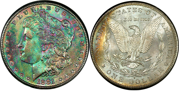 View the largest gallery of high-end and Monster rainbow toned Morgan dollars, an informational guide on how to tell natural vs. artificial toning, learn to price toned Morgans, view auction results of rainbow Morgans, and view what characteristics to look for in high-end toned rainbow Morgan dollars.