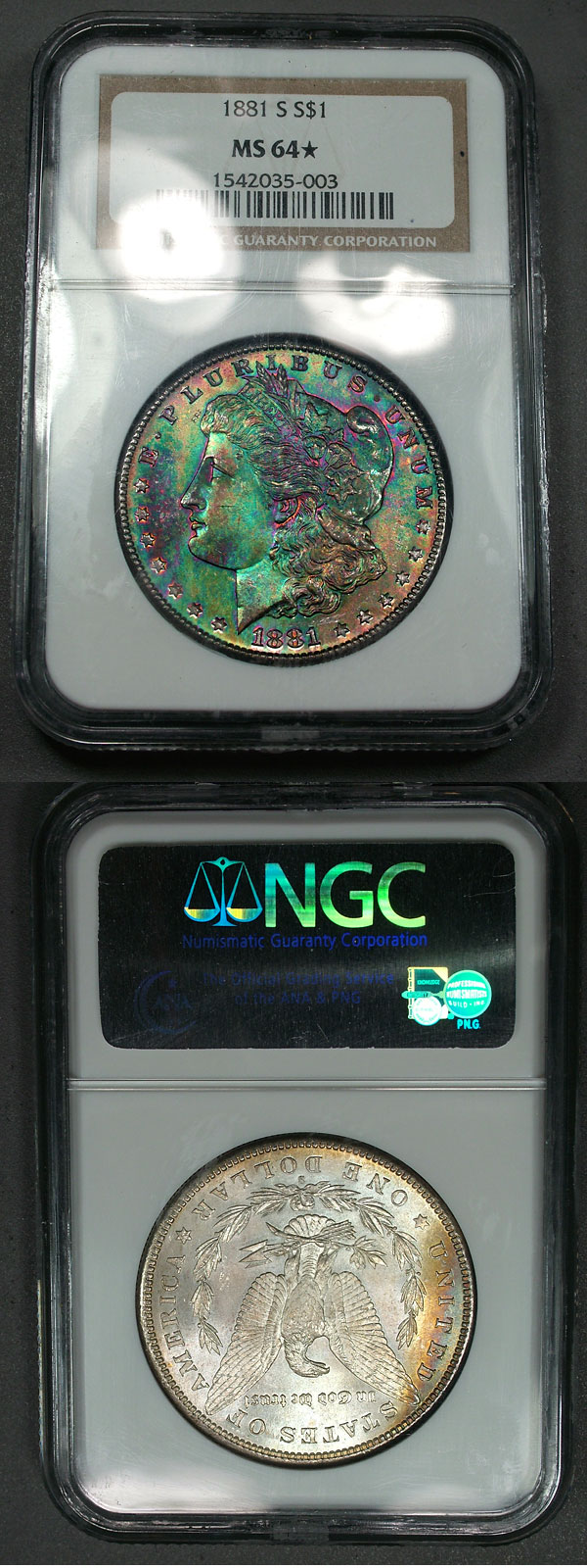 1881-S $1 NGC MS64* STAR Green Goblin Toned Morgan