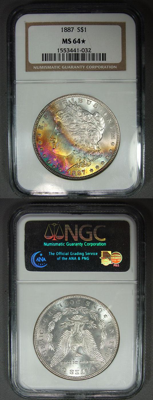 1887 $1 NGC MS64* Dramatic Rainbow Toned Morgan Dollar