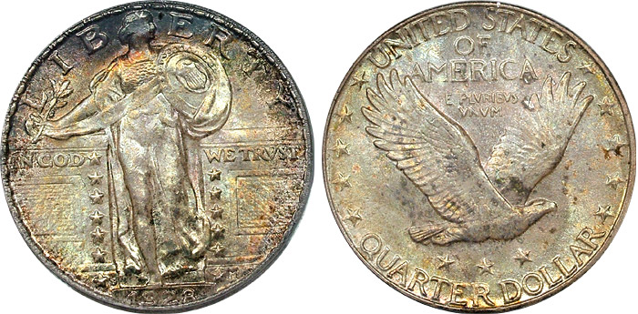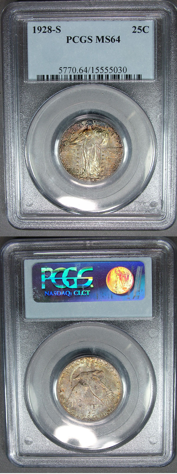 1928-S 25c PCGS MS64 Toned Standing Liberty Quarter