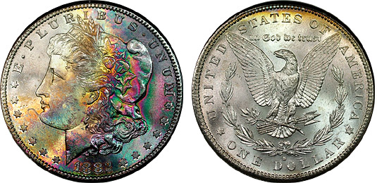 rainbow Morgan dollars.