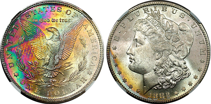 rainbow Morgan dollars.