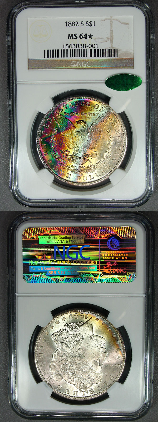 1882-S $1 NGC MS64* Star Neon Textile Rainbow Morgan - CAC