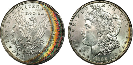 View the largest gallery of high-end and Monster rainbow toned Morgan dollars, an informational guide on how to tell natural vs. artificial toning, learn to price toned Morgans, view auction results of rainbow Morgans, and view what characteristics to look for in high-end toned rainbow Morgan dollars.