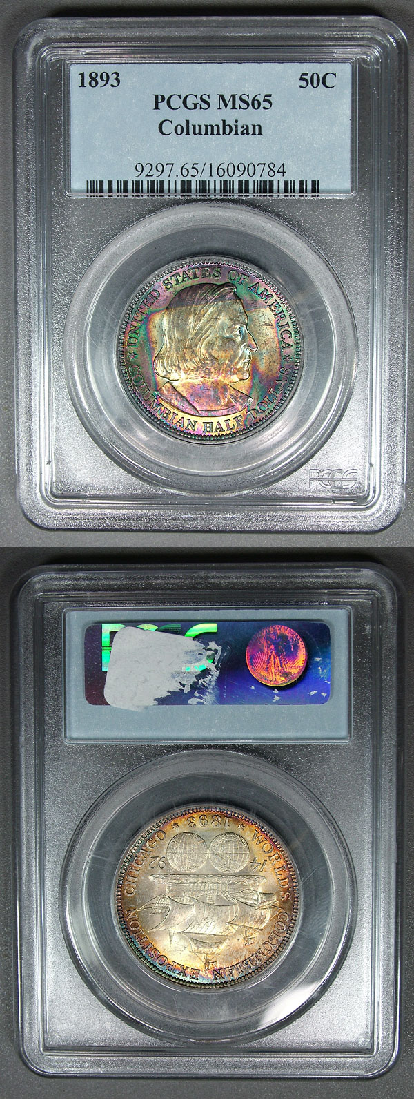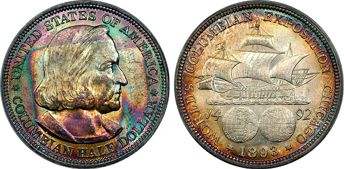 1893 50c PCGS MS65 Monster End Roll Toned Columbian Commem
