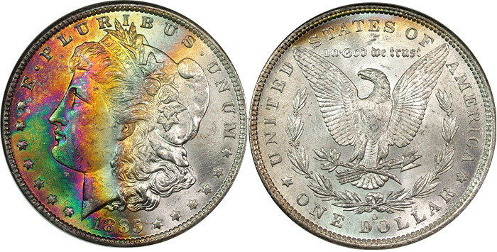 View the largest gallery of high-end and Monster rainbow toned Morgan dollars, an informational guide on how to tell natural vs. artificial toning, learn to price toned Morgans, view auction results of rainbow Morgans, and view what characteristics to look for in high-end toned rainbow Morgan dollars.