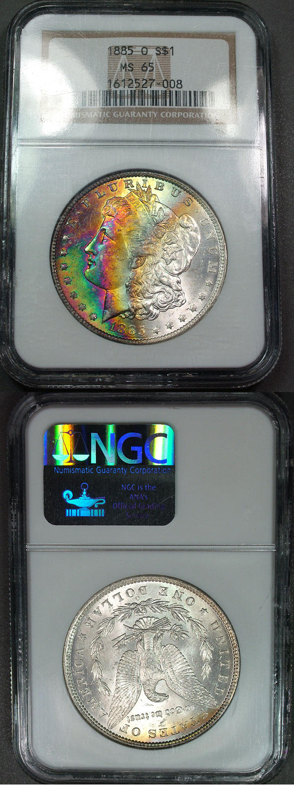 1885-O $1 NGC MS65 Vivid Rainbow Toned Morgan