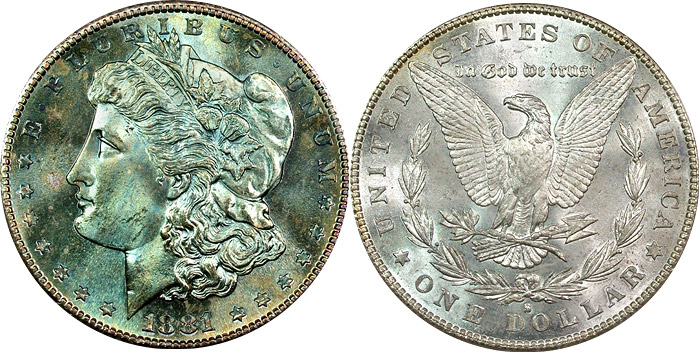 1881-S $1 PCGS MS66 Blue Textile Toned Morgan - Ice Storm