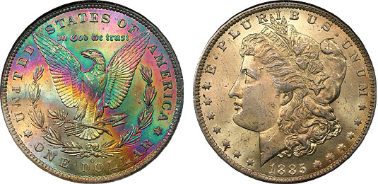 rainbow Morgan dollars.