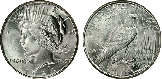 1934-D $1 NGC MS65 Peace Silver Dollar