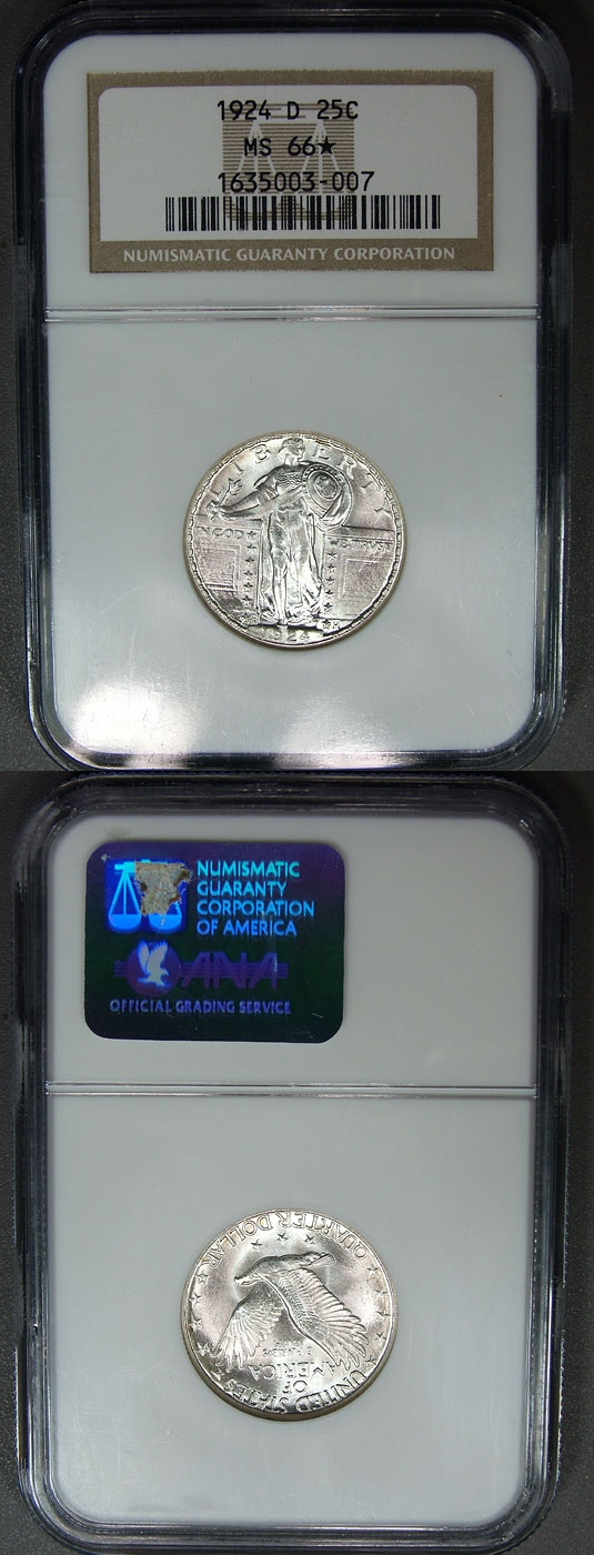 1924-D 25c NGC MS66* Lustrous Standing Liberty Quarter