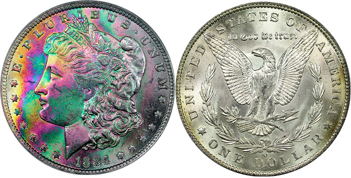 rainbow Morgan dollars.