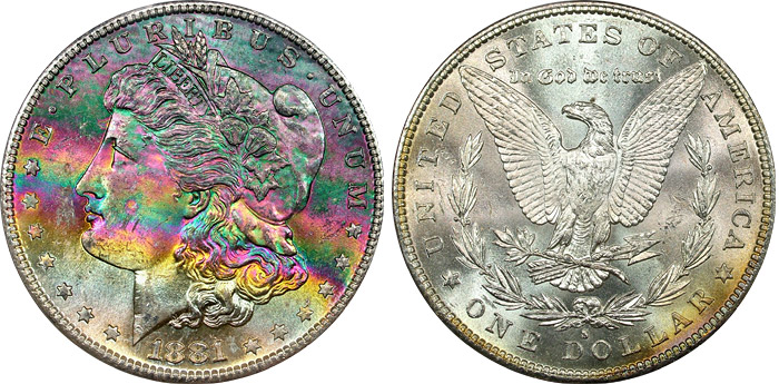 View the largest gallery of high-end and Monster rainbow toned Morgan dollars, an informational guide on how to tell natural vs. artificial toning, learn to price toned Morgans, view auction results of rainbow Morgans, and view what characteristics to look for in high-end toned rainbow Morgan dollars.