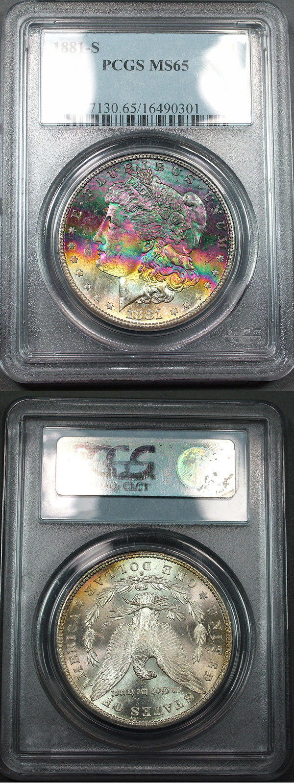 1881-S $1 PCGS MS65 Rainbow Toned Morgan - Beauty Mark