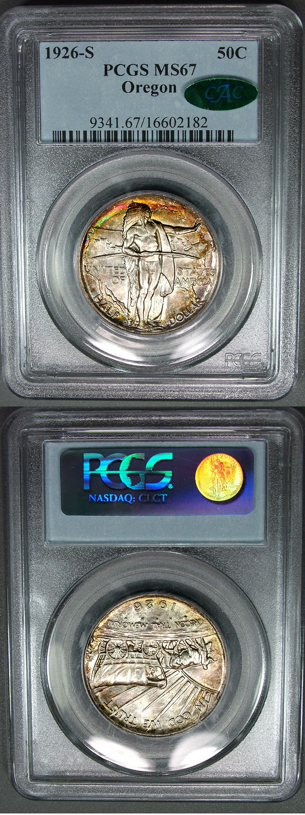 1926-S 50c PCGS MS67 Boldly Toned Oregon Commem - CAC