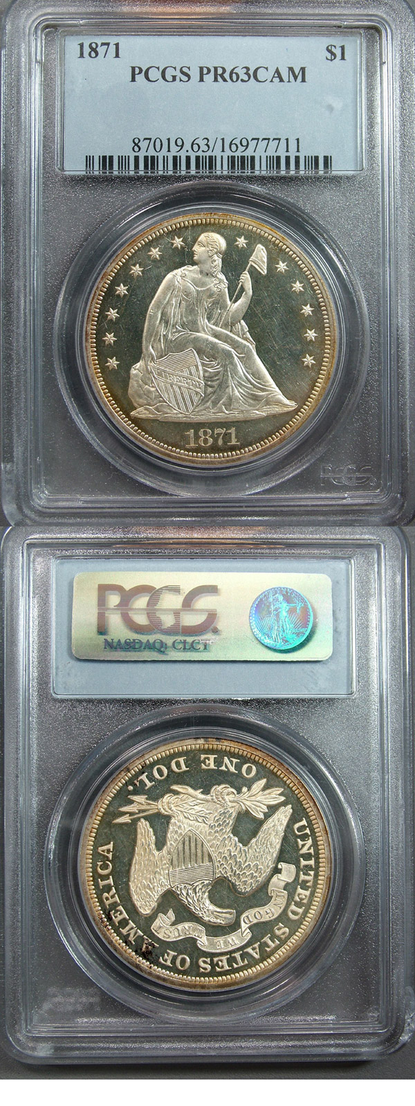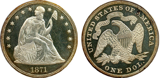 1871 $1 PCGS PR63CAM Proof Cameo Seated Dollar