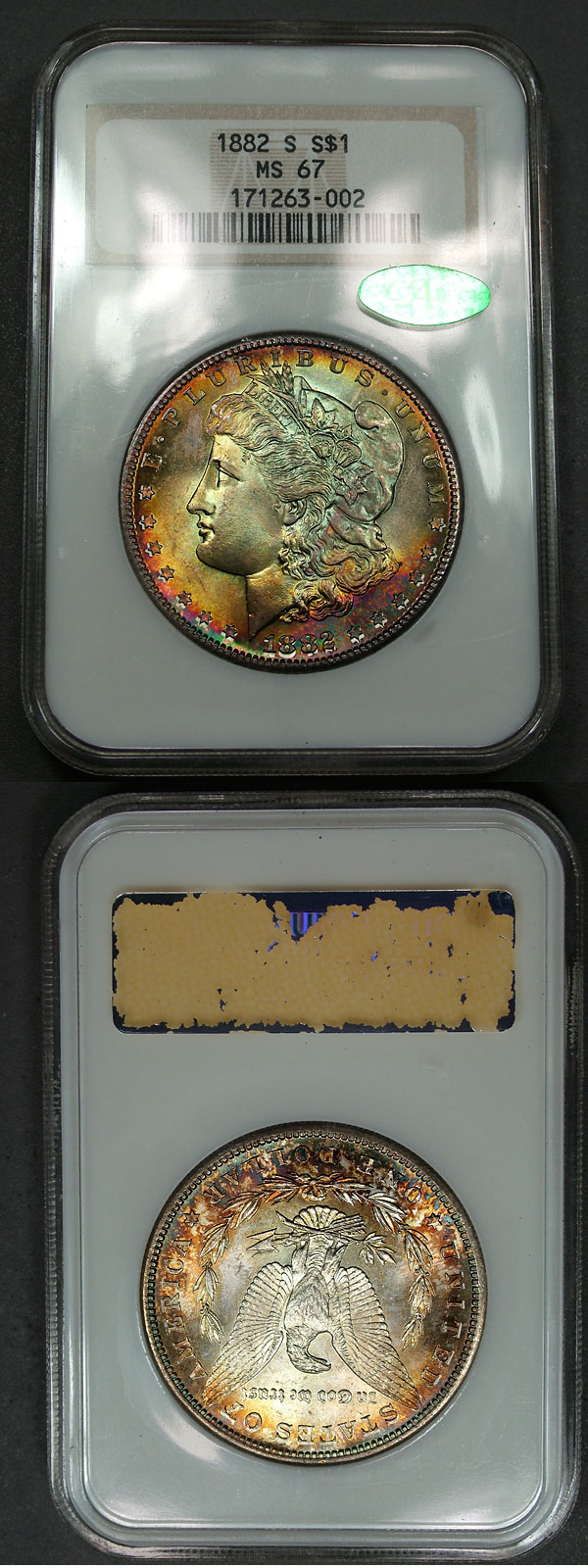 1882-S $1 NGC MS67 CAC Rainbow Toned Morgan - Salamander