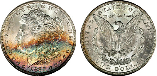 View the largest gallery of high-end and Monster rainbow toned Morgan dollars, an informational guide on how to tell natural vs. artificial toning, learn to price toned Morgans, view auction results of rainbow Morgans, and view what characteristics to look for in high-end toned rainbow Morgan dollars.