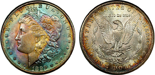rainbow Morgan dollars.
