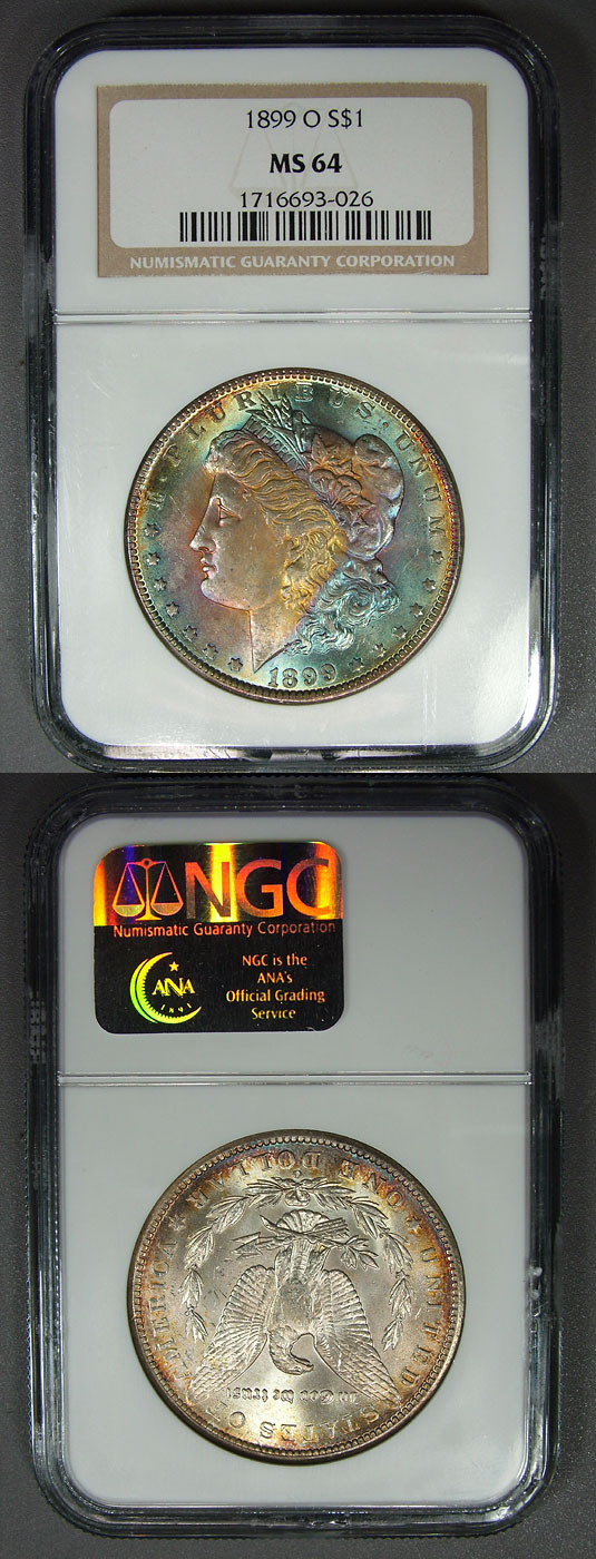 1899-O $1 NGC MS64 Electric End-Roll Toned Morgan Dollar
