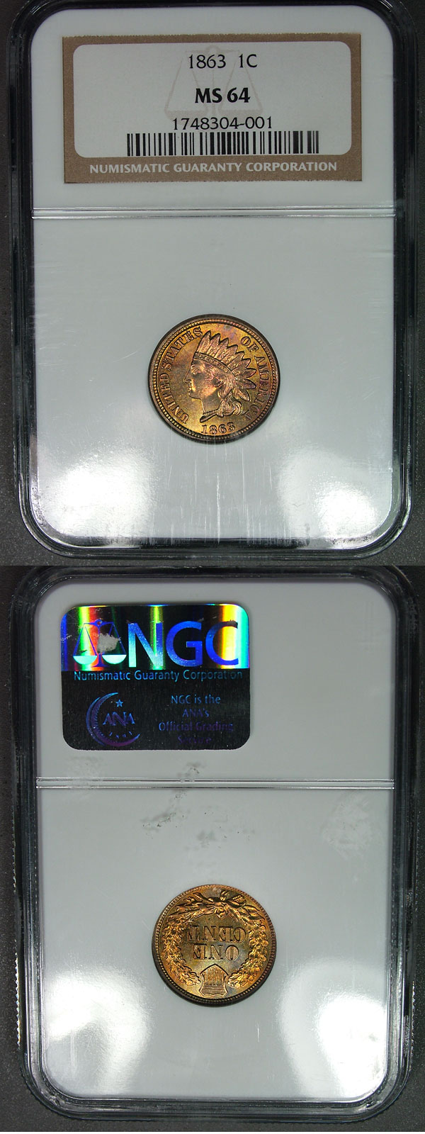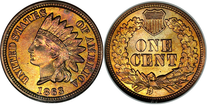 1863 1c NGC MS64 Toned Indian Cent