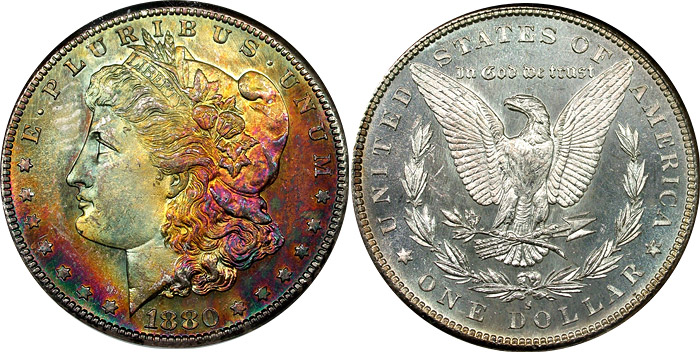 View the largest gallery of high-end and Monster rainbow toned Morgan dollars, an informational guide on how to tell natural vs. artificial toning, learn to price toned Morgans, view auction results of rainbow Morgans, and view what characteristics to look for in high-end toned rainbow Morgan dollars.