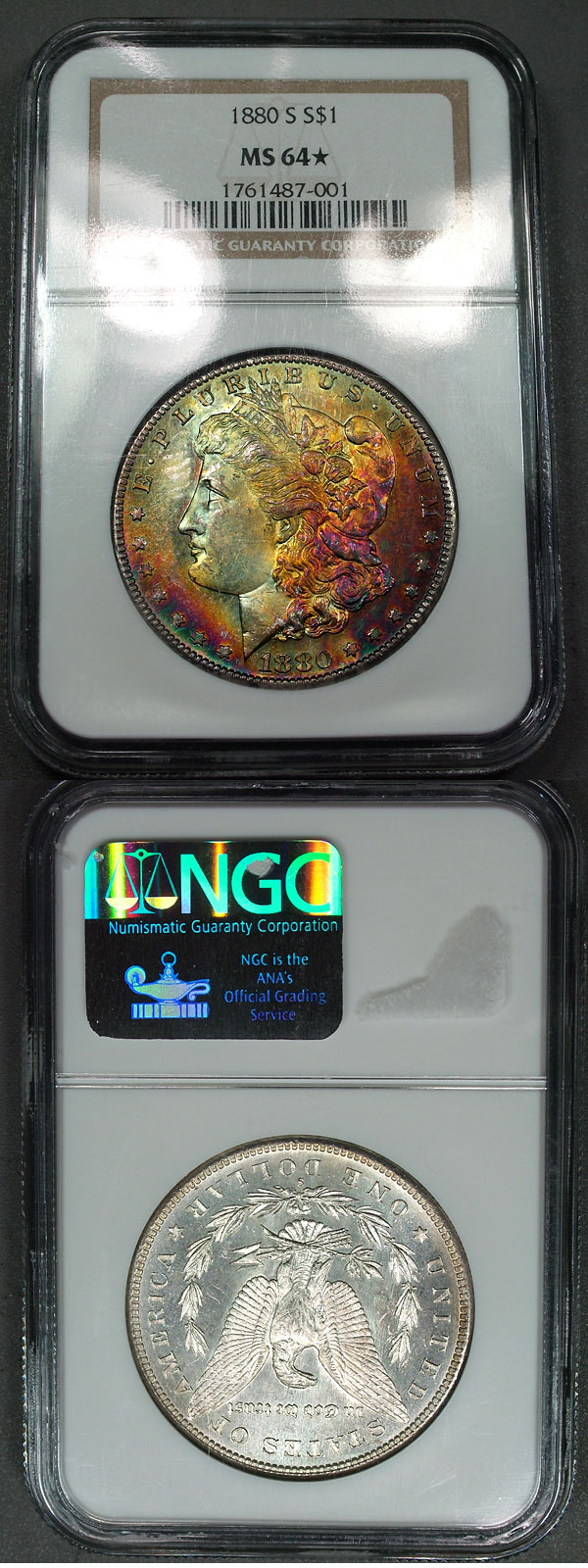 1880-S $1 NGC MS64* STAR Mirrored Rainbow Toned Morgan